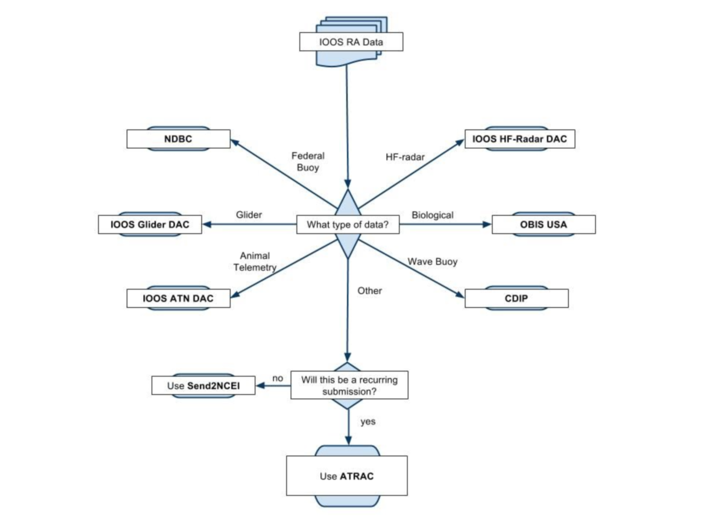 Below is a diagram of the pathway for the various types of IOOS RA data to get to the NCEI archive: